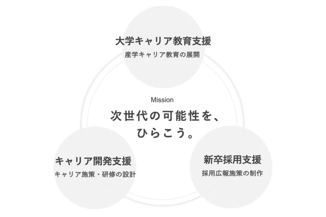 Original Pointでは、一方の事業で得た知見が他の事業でも活きることが頻繁にあるんです。例えば、最近の大学生の雰囲気を知っているからこそ、企業に対して今やるべき研修や採用を提案できますし、最近の企業が求める学生像を知っているからこそ、それを踏まえた学生のキャリア支援ができます。
